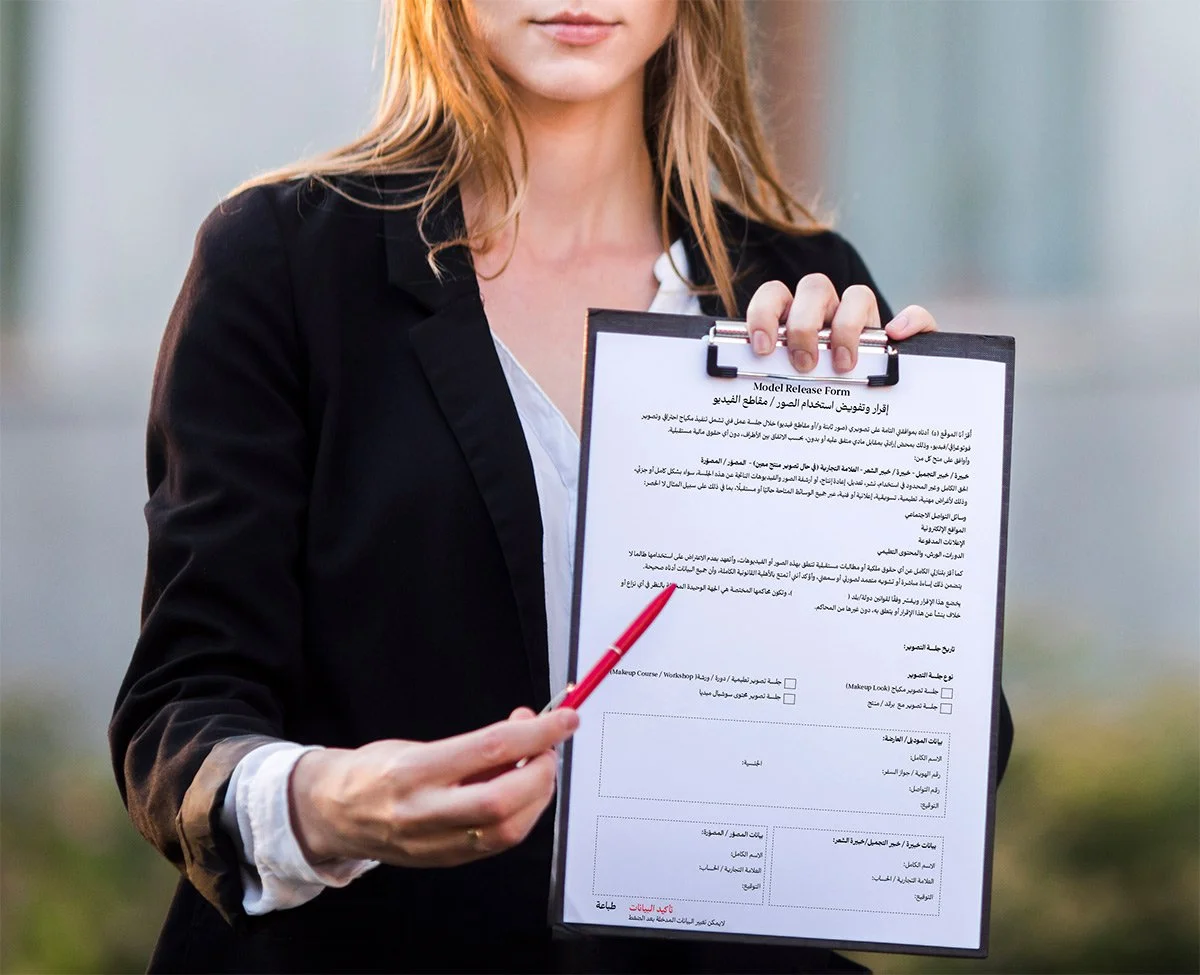 الموديلز / العارضين: لضمان موافقتهم على التصوير واستخدام صورهم وفيديوهاتهم، سواء لأغراض تجارية أو تعليمية أو ترويجية، دون أي لبس حول الحقوق المالية أو القانونية.
